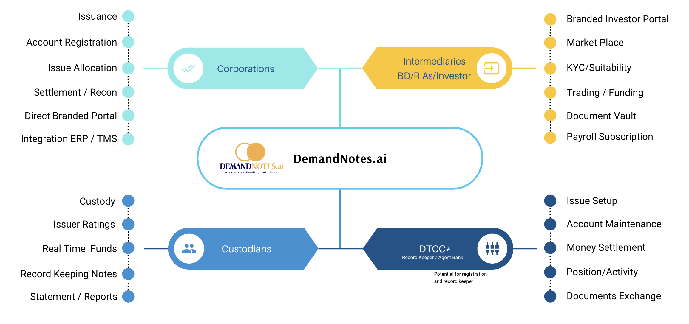 DemandNotes.ai transforms how corporations and investors interact with demand notes. By leveraging us you can experience smarter funding and investment strategies. Join us today to start optimizing your liquidity needs and investment portfolios.